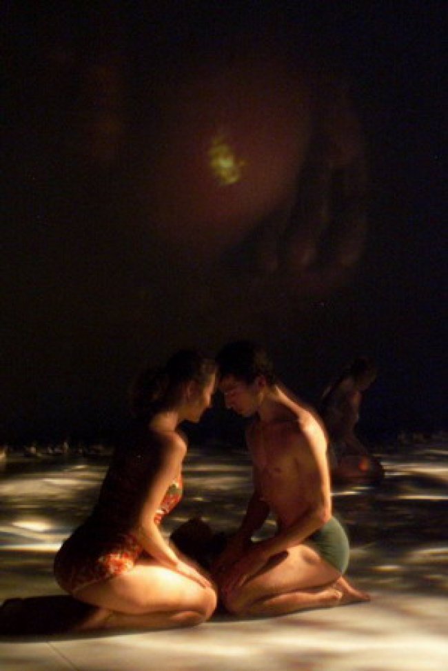 »‘Alles fließt’ - die griechische Heraklit-Formel bestimmt durch Licht-Design, laufende und stehende Bilder die Wasserwelt im ersten Teil. Wenn sich die acht Tänzer und Tänzerinnen in Badekleidung zu Menschen materialisieren, fällt der Schuh-Berg aus dem Deckengestänge zu Boden. Wie die Barfußwesen damit spielen, was sie mit den Fremdkörpern anstellen, das ist eine der witzigsten Szenen im Stück.«