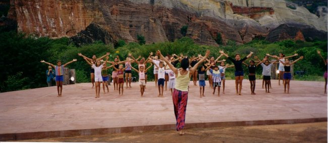 Supporting FUMDHAM (Fundação Museu do Homem Americano) in establishing and protecting the Serra da Capivara National Park, since 1991 UNESCO included in World Heritage and, mainly for the great implement in social and human development, Lina do Carmo in partnership with Fumdham started the program Pró-arte, composed of three interative education programs: dance, music and visual arts, trying important social transformations. Awarded "Cidadão 21 ARTE" by the Ayrton Senna Institute in 2002 and working with children and youngsters from the small communities around the National Park Serra da Capivara, we are trying to wake up artistic inspiration, trusting that knowledge exercised by Art in Education can strongly build up a new generation.